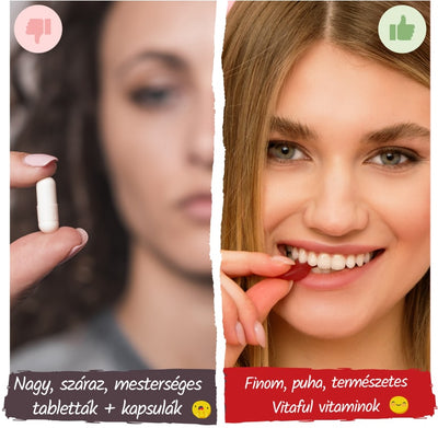 Rágj el napi 2 darab gumivitamint étkezés után vagy között. Nem szükséges hozzá víz, egyszerűen meg tudod enni, mint egy gumicukrot. 1 doboz 2 hónapra elegendő!