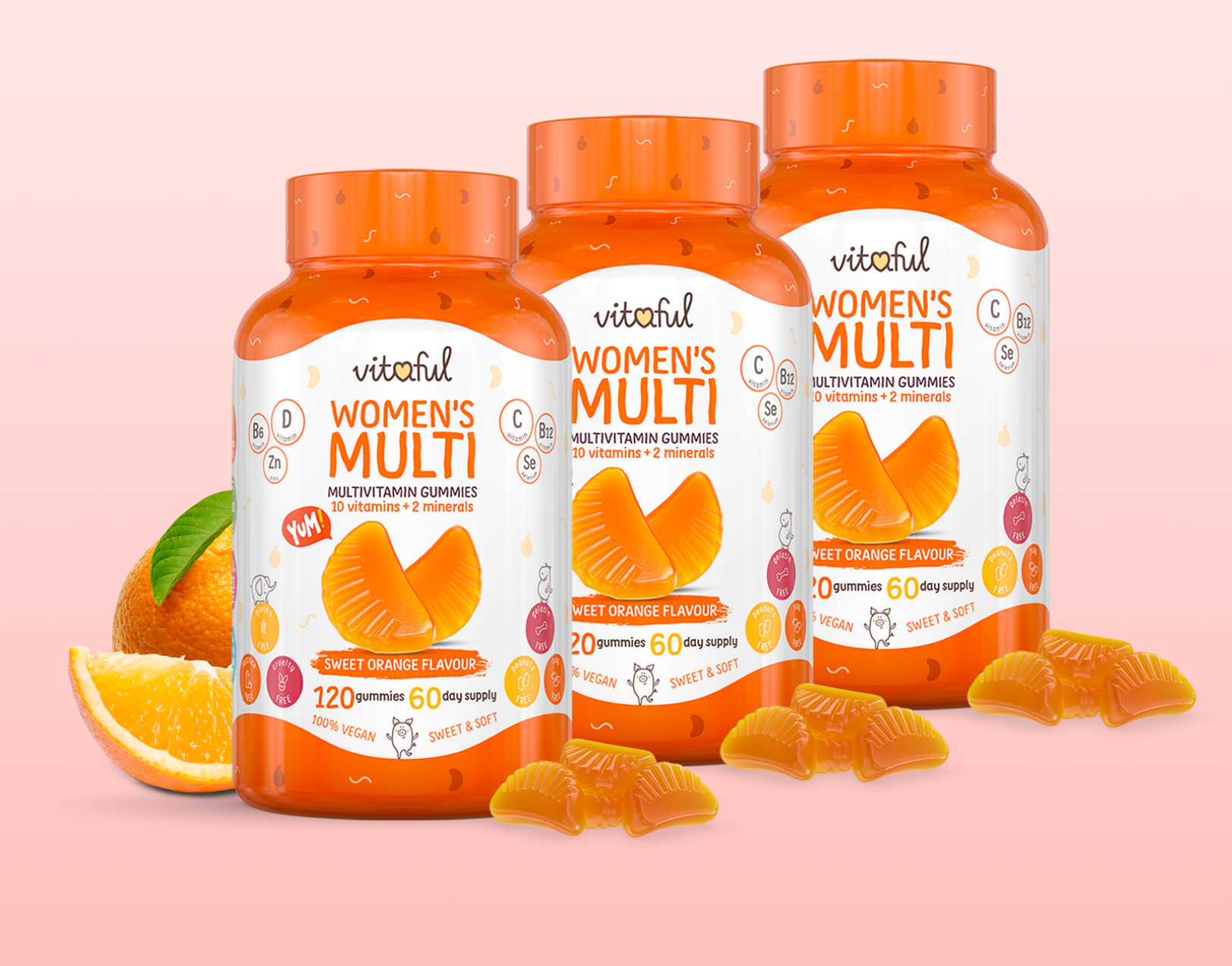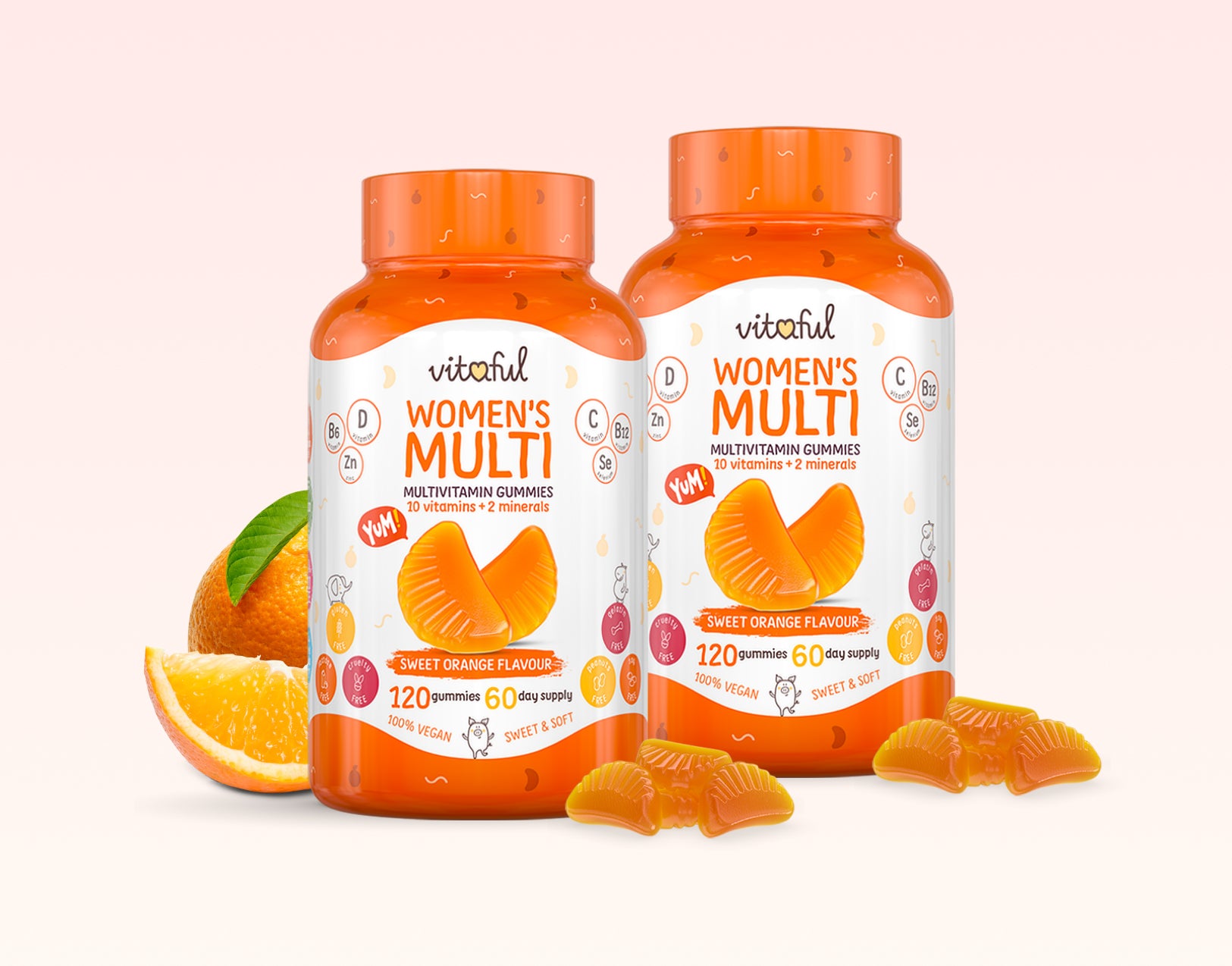 Mi az a Women's Multi? A Women's Multi egy könnyen fogyasztható gumivitamin, amely A-, B-, C-, E- és D-vitamint, valamint szelént, cinket, jódot és rezet tartalmaz zamatos narancs ízben.